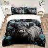 Highland Cow And Rose Pattern Duvet Cover Set Breathable, Sanded Polyester Fabric With Digital Animal Print, Zipper Closure