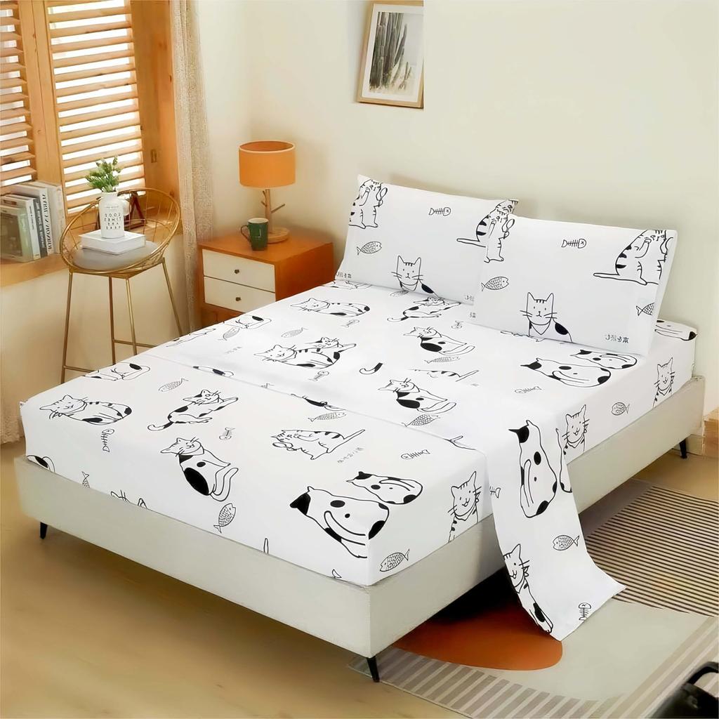 Cute Cartoon Cat Pattern Bed Hat Four-Piece Bedding Set Bedroom Dormitory Bedding Decoration