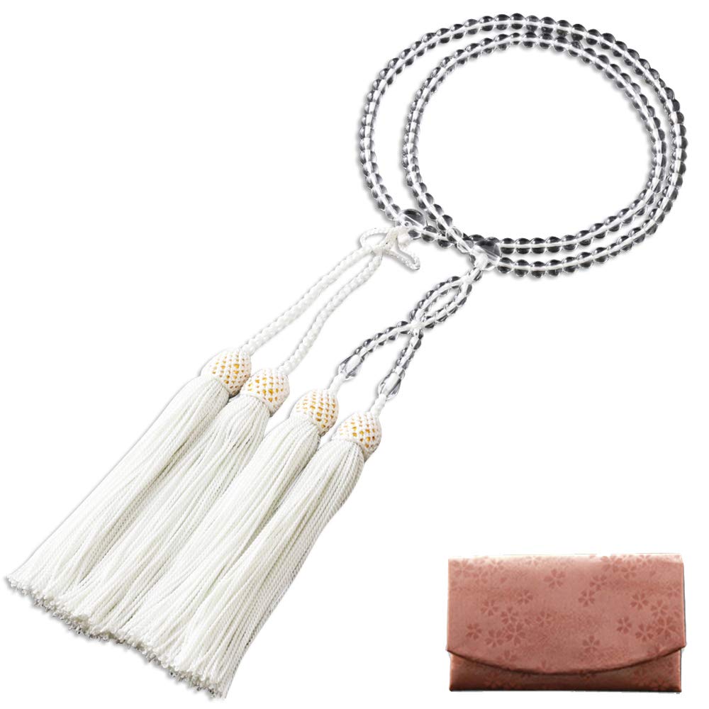 Hayashi Kyo Butsudan Buddhist Altar, Jodo Shinshu Buddhist Prayer Beads, 8 inches, Genuine Crystal (Women's), Formal Style [Prayer Beads Bag Set]