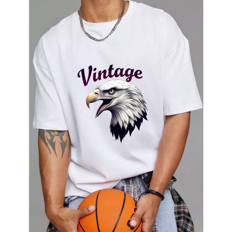 Vintage Eagle Head Graphic T-Shirt White American Bald Eagle Print and Text Casual Wear for Men and Women Outdoor Adventure Fashion Streetwear Style