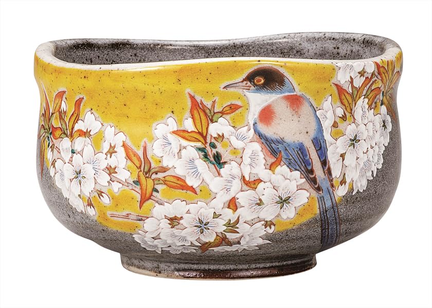 Nakamaru "Kutani Ware" Matcha Bowl - Yoshidaya Mountain Cherry Blossom and Bird K9-855
