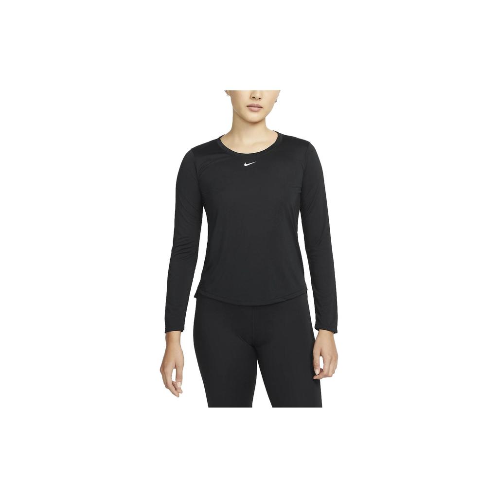 Nike Breathable Quick-Dry Solid Color Logo Round Neck Long Sleeve Drop Shoulder T-Shirt Women T-Shirt Black DD0642-010