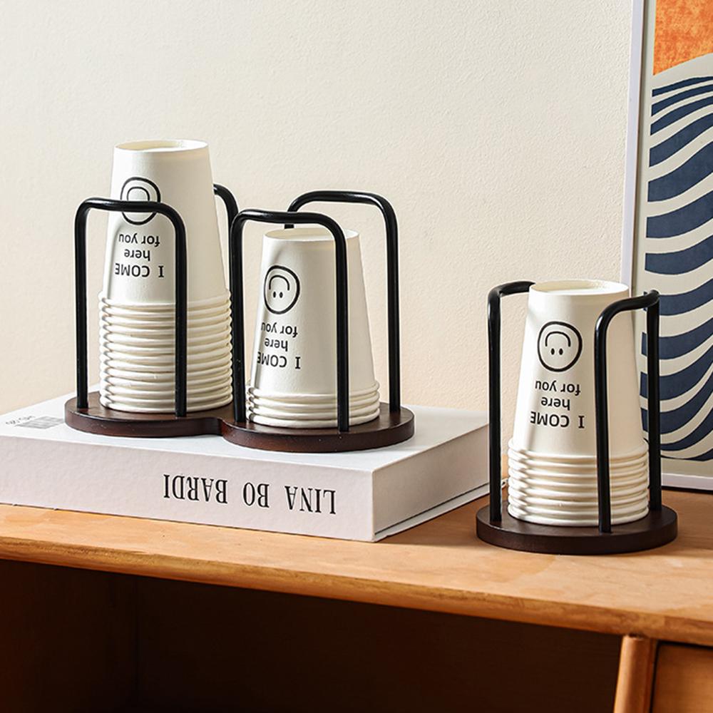 Disposable Cup Storage Holder Rack Shelf Water Tea Cups Wood Dispenser with Longer Stick Mug Display Stand Organizer Supplies