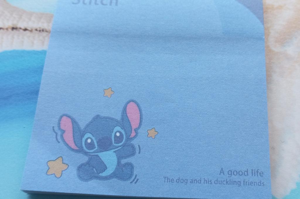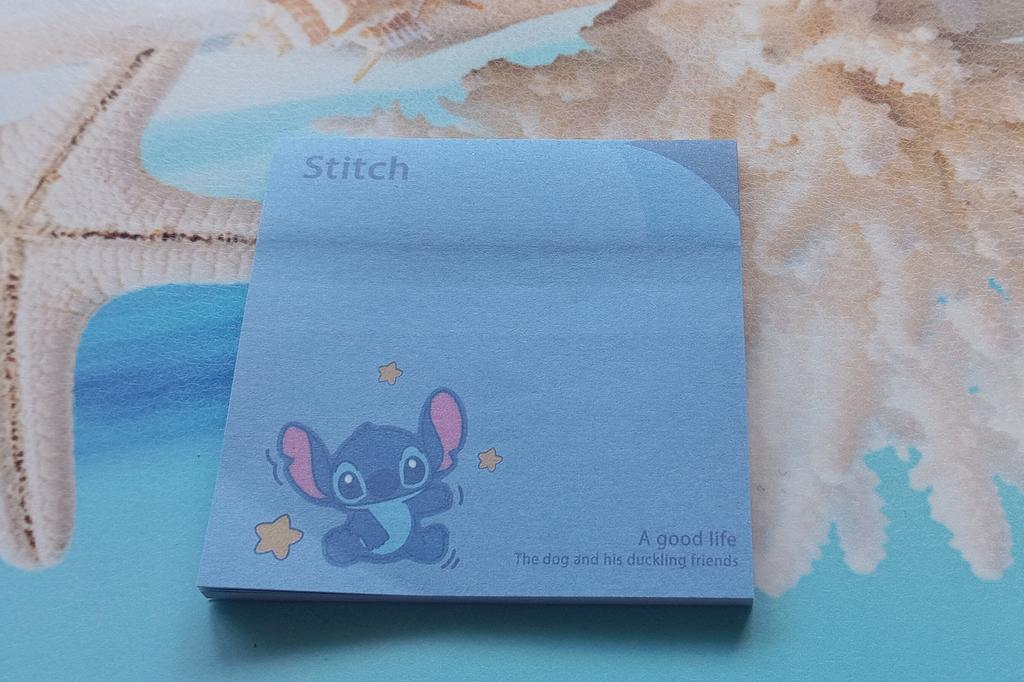 Bloc de notițe Stitch 💙 Bloc de notițe adezive prețios cu Stitch, personajul Disney din filmul Lilo & Stitch. Blocul este de format pătrat, cu o hârtie groasă în nuanță de albastru și un desen simpatic cu Stitch în colțul din stânga jos.. Fiecare bloc are 50 de pagini și, datorită dimensiunii sale mici, este perfect pentru a fi purtat în geantă, deoarece este, de asemenea, ușor și îl poți lua oriunde.. Livrarea a fost foarte rapidă, mai puțin de o lună pentru a ajunge în Spania, cu urmărire până la momentul livrării.. Marca care îl comercializează este Miniso, 100% recomandat