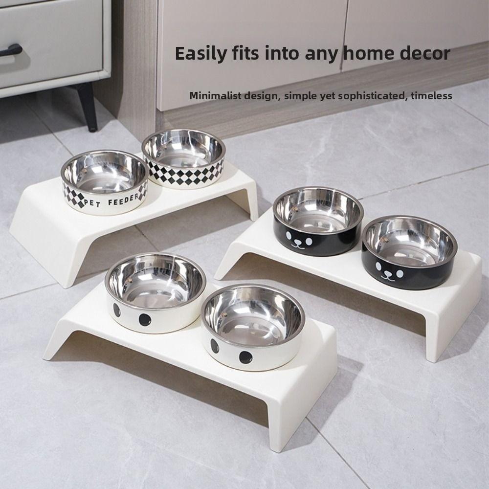 Double Bowls Cat Food Water Bowl Anti-flip Cat Dog Dual-use Bowl Pet Food Dispenser Wet Dry Food