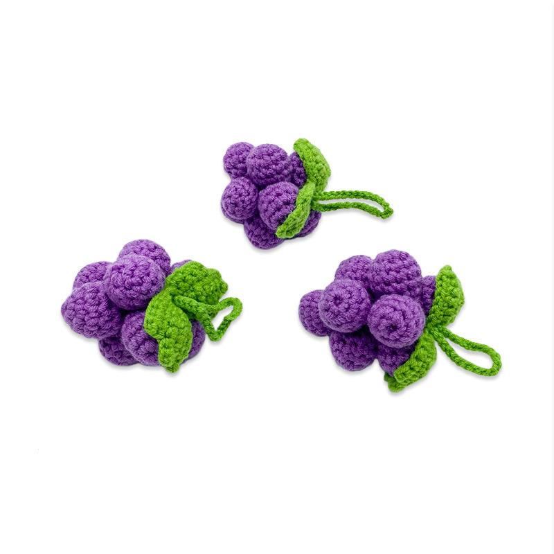 2pcs Handmade Crochet Grape Keychain - Purple Knitted Hanging Decoration with Green Leaves, Artifical Crocheted Fruits