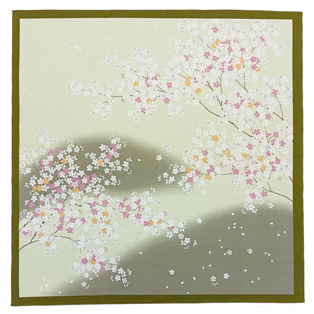 Uno Chiyo Large Sakura Furoshiki Blossom 90cm Cotton Large Sanbi Made in Japan (Cherry Design), Wide, Shantung, Green, Furoshiki, (Praise),
