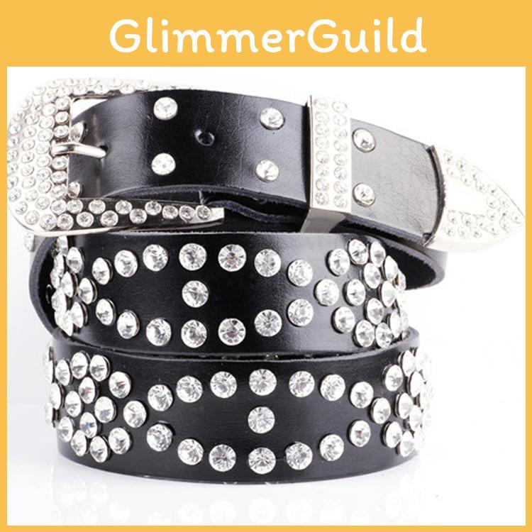 Elegant Womens Wide Leather Belt With Crystal Details And Classic Pin Closure For Fashion