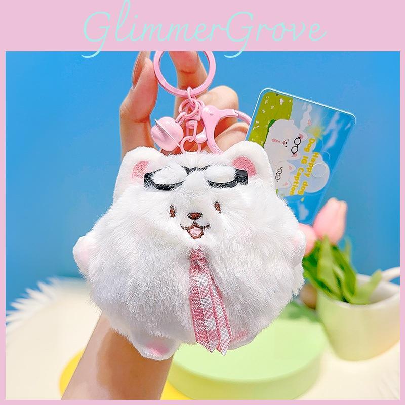 The plush keychain features soft, plush material crafted for durability and a charming appearance. Measuring approximately 4 inches in height, it offers a lightweight, portable design ideal for daily use. The keychain emits a playful squeak, adding fun to its functional role as a bag or key accessory.