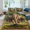 3D Elephant Duvet Cover Set Queen Size African Safari Animal Comforter Set Wildlife Bedding Set Retro Wall Decor Bedspread Cover