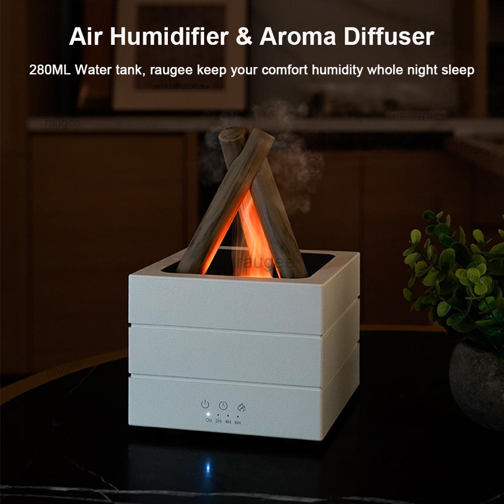 1. FLAME HUMIDIFIER:The flame aroma diffuser integrate with a built-in smart LED light that collects light and mist to create a realistic flame effect, adding a relax,soothe,calm atmosphere to your home,office,shop or more.