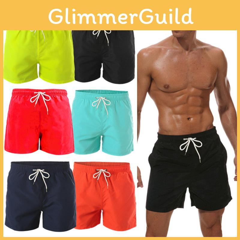 Durable Men's Swim Gym Shorts With Elastic Waistband And Adjustable Drawstring Tie
