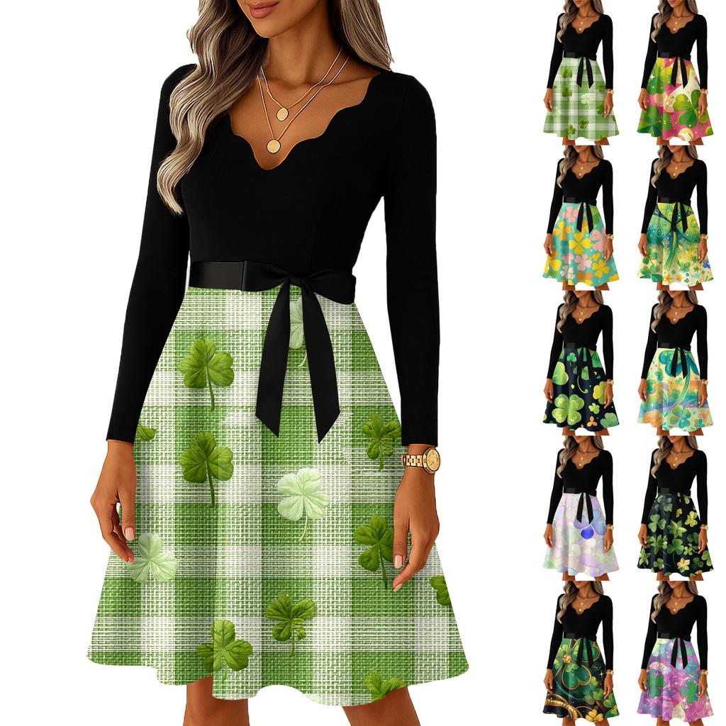 Women's Casual Fashion V Neck Long Sleeve Printed Party Vintage Long Dresses