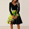 Women's Casual Fashion V Neck Long Sleeve Printed Party Vintage Long Dresses