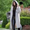 Stil Toamnă Iarnă Culoare Solidă Larg Cardigan Pulover Femei Lungime Medie Confortabil Casual Cu Glugă Palton Tricotat