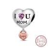 Original Copper Charm Bead Mother'S Day Love Heart Family Charm Bead Pendant Fits Bracelet Womens Jewelry Gifts