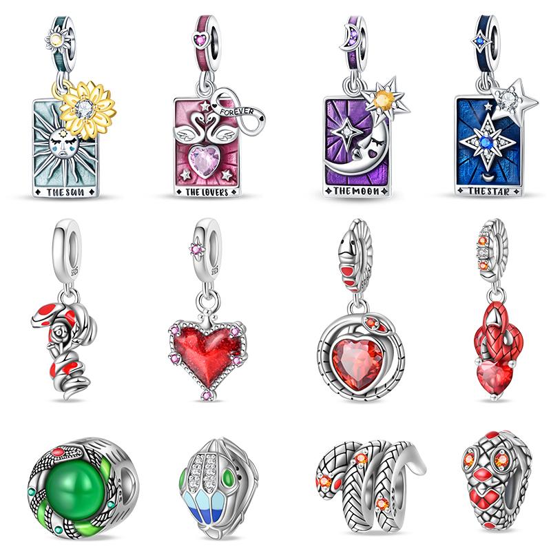 100% Copper Exquisite Tarot Cards Bracelet Pendants Blood Red Fire Snake Rose Charms Beads Diy Jewelry For Women
