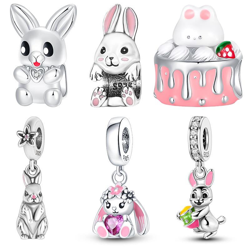 Copper Rabbit Pendant Rabbit Birthday Cake Beads Fit 4Mm Hole Diamete Charms Bracelets Women Diy Jewelry Gift