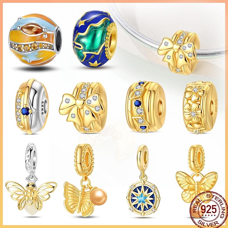 Copper Shiny Zirconia Gold Butterfly Charm Beads Fit 3Mm Original Bracelet Exquisite Diy Birthday Jewelry