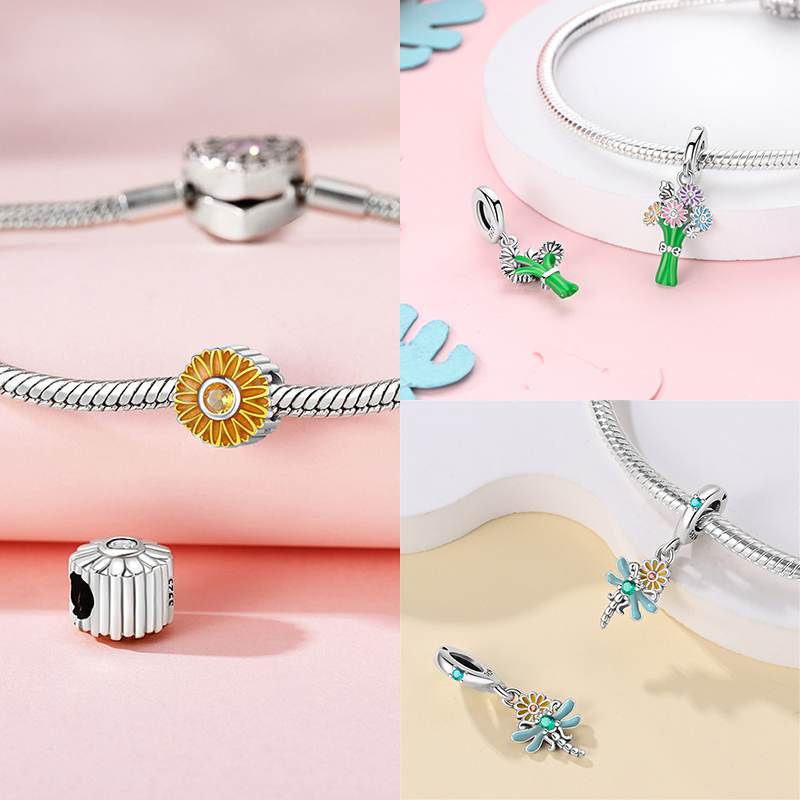 Original Copper Charms Chrysanthemum Fower Yellow Beads Fit Bracelet Accessories Charms Jewelry Making Fine Gift