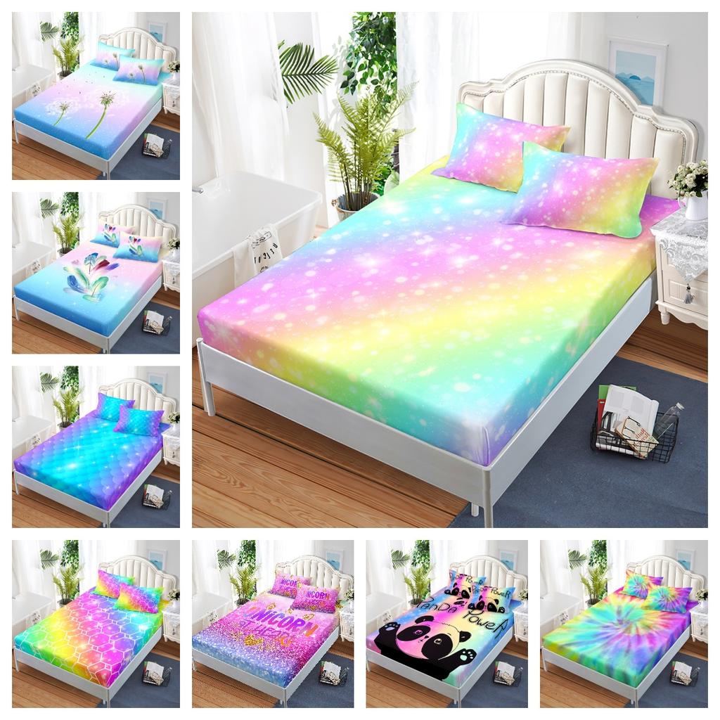 Mattress Three-Piece Cartoon Panda Gradual Change Bedspread Pillowcase Mattress Protective Cover