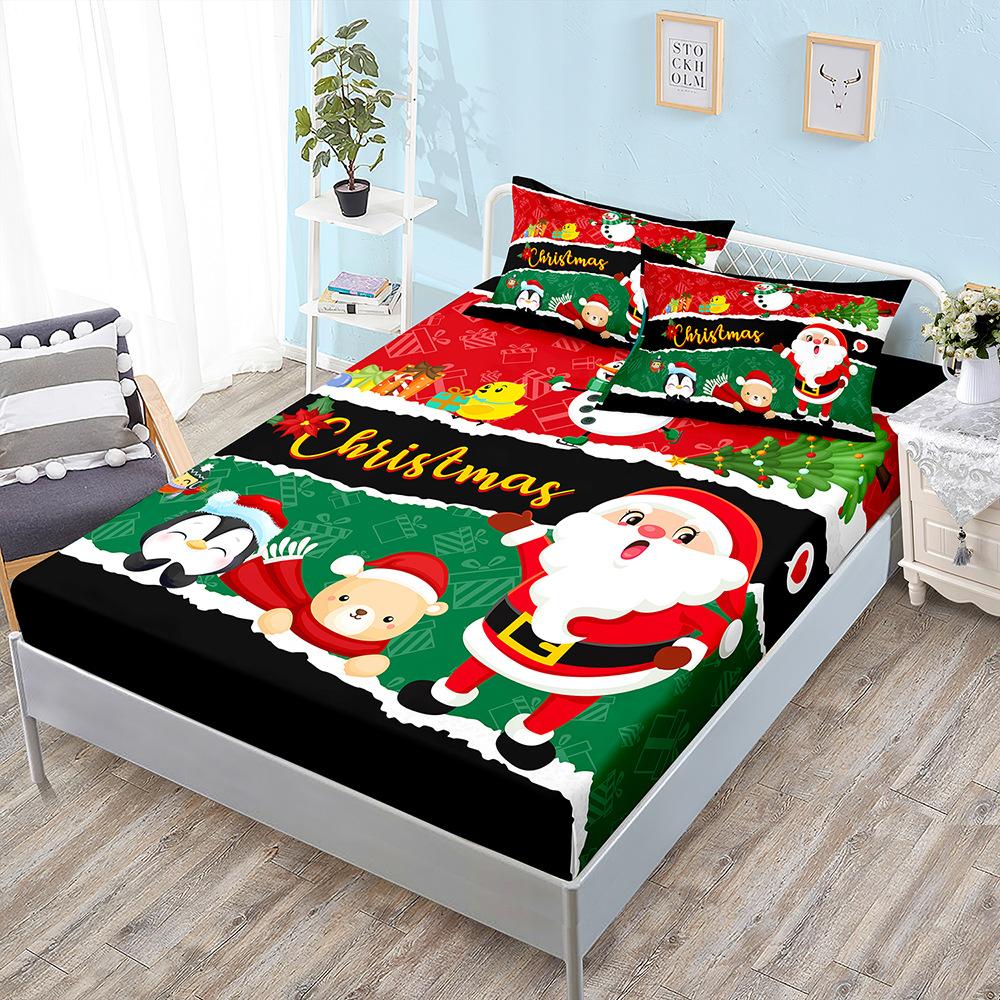 Christmas Three-Piece Mattress Digital Printing Mattress Cover Mattress Protective Cover