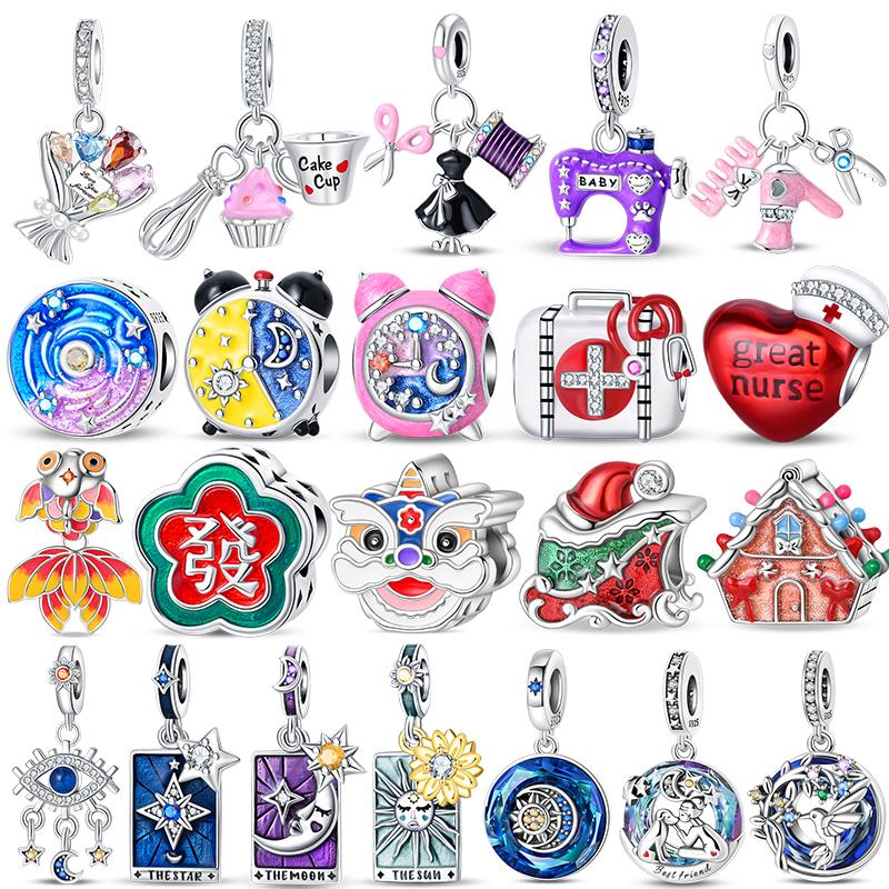 Copper Koi Fish Charms Star Moon Alarm Clock Pendants Beads Jewelry Fit Mula Original Bracelet For Women Diy