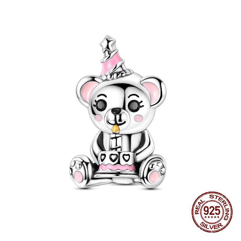 New Copper Charms Beads Pendant Birthday Cake Bear Beads Fit Original Bracelet Charms Women Jewelry Birthday Gifts