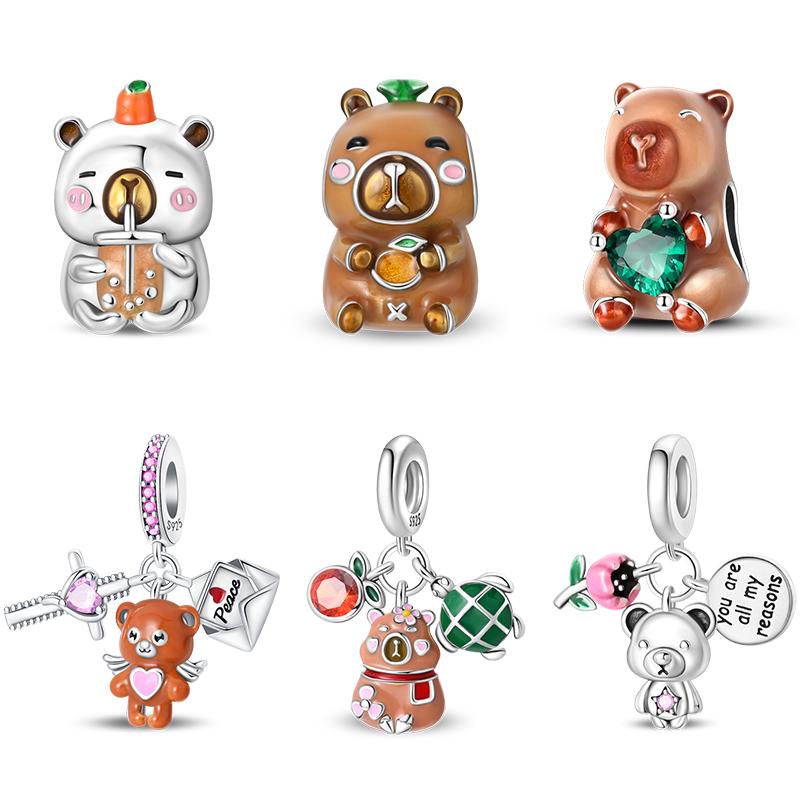 S Copper Charms Pendant Capybara Sausage Dog Animal Safety Chain Beads Fit Original Bracelet Women Jewelry