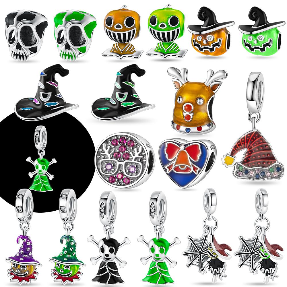 Original Copper Purple Magic Hat Pendant Pumpkin Skull Head Beads Fit Bracelet Women Jewelry Diy Gift Accessory Making