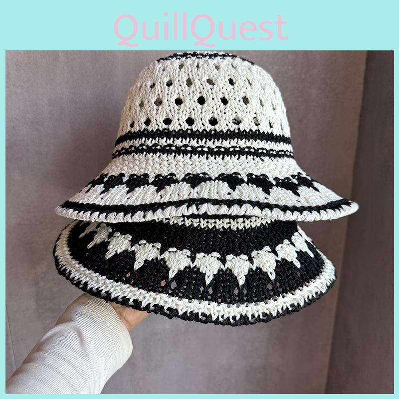 Womens Summer Pattern Hollowed Out Hat With Wide Brim And Uv Sunblock For Fashionable Outings