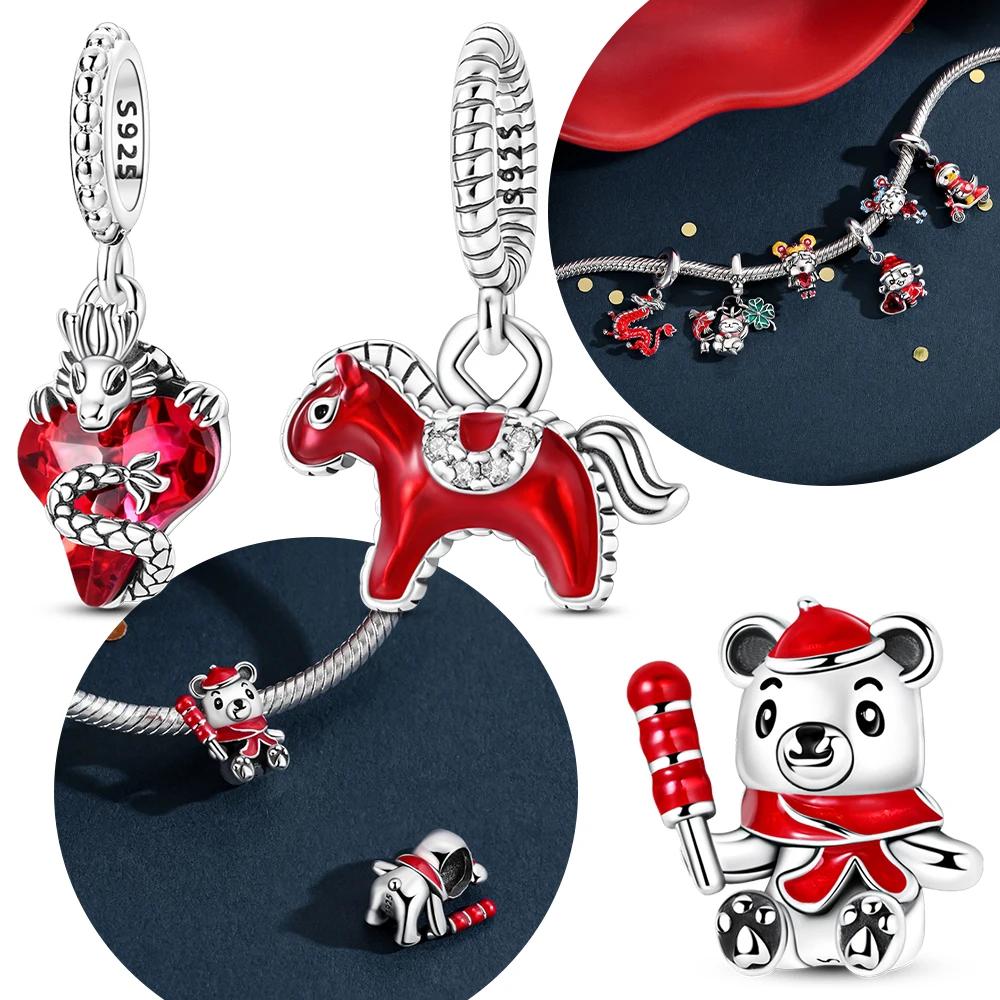 Red Dragon Pendant Horse Animal Bear Candy Cane Original Charms Copper Beads Fit Bracelet Jewelry Gift Delicate Accessory