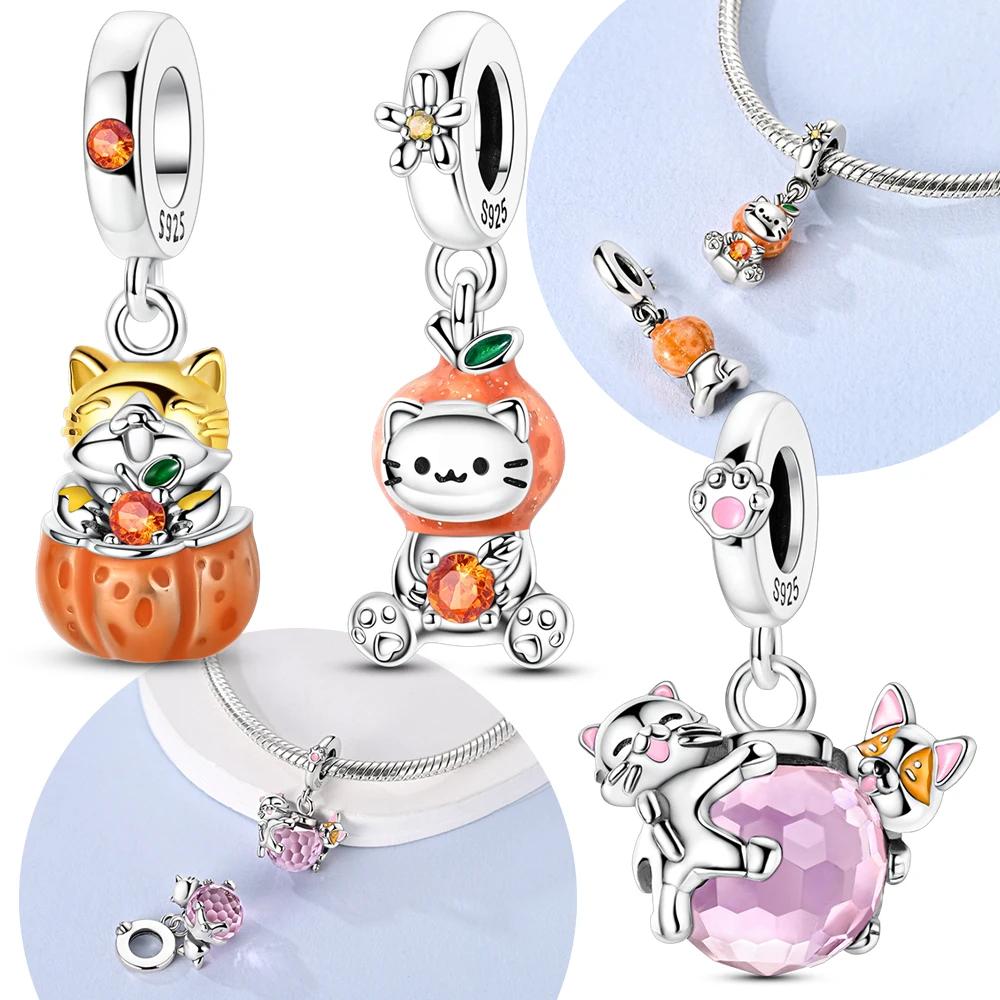 Exquisite Orange Cat Pink Zircon Cat Paws Beads Original Charms Copper Fit Bracelet Women Jewelry Making Diy Gift