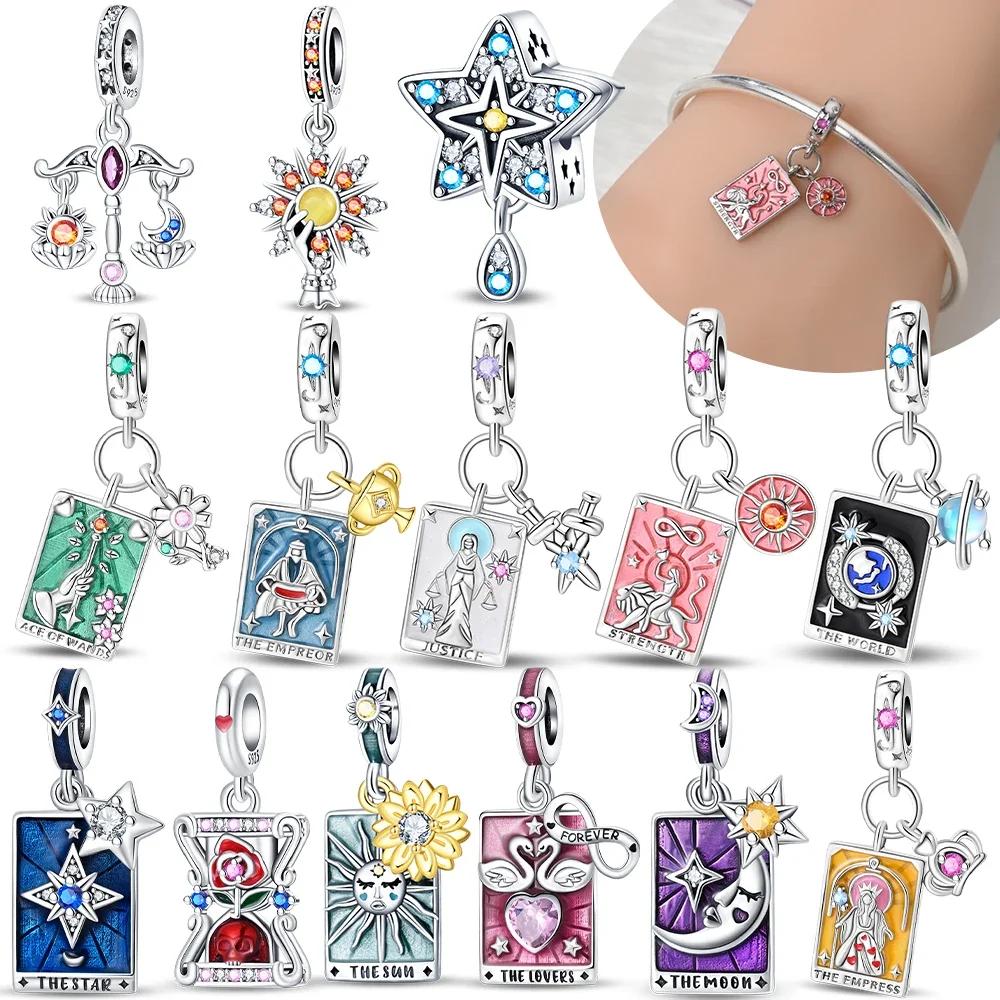 Exquisite Tarot Card Pendant Stars Moon Sun Original Copper Charms Beads Fit Bracelet Women Fine Delicate Gift Accessory Set