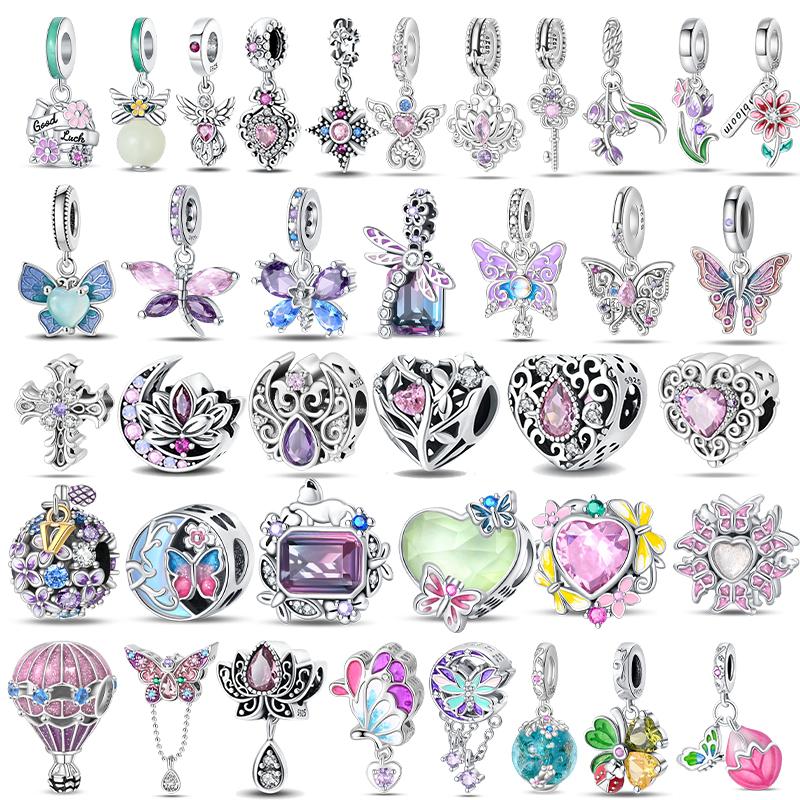 Copper Classic Purple Retro Heart Shape Lotus Angel Pattern Charms Beads Fit Necklace Bracelets Pendant Diy Jewelry