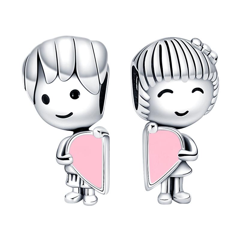Original Charms Copper Love Combination Boy And Girl Charms Beads Fit 3Mm Original Bracelet Women Diy Jewelry Gifts