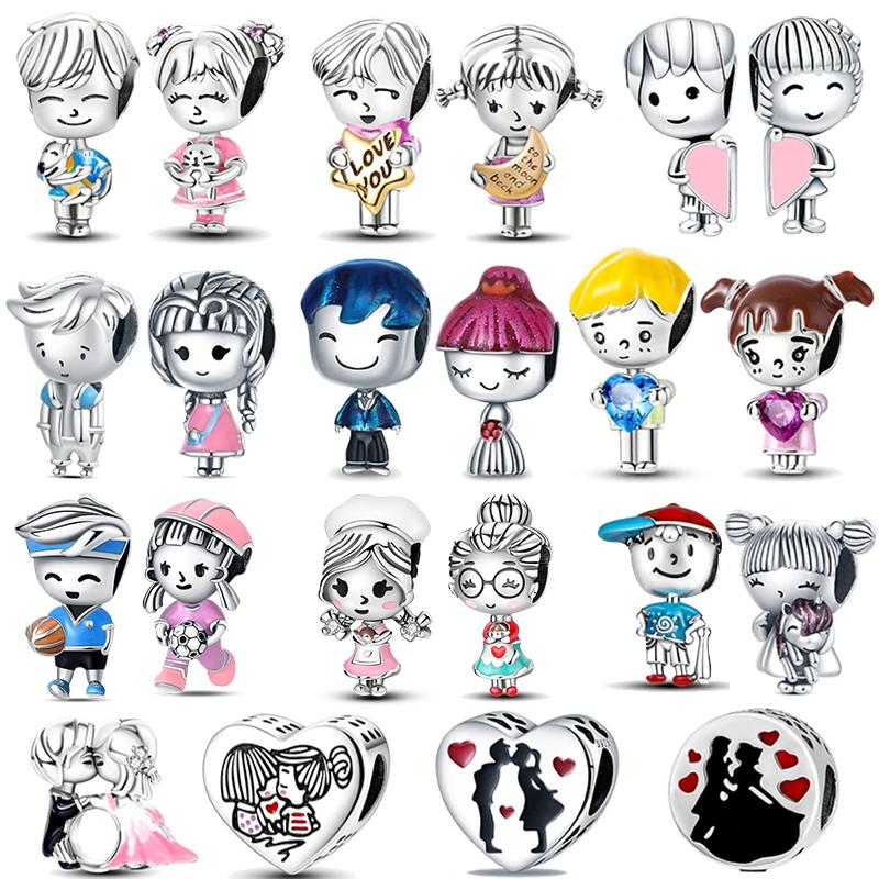 Copper Boy Girl Couple Lovers Beads Charms Zirconium Dangle Fit Original Bracelet Charms Jewelry Women Diy