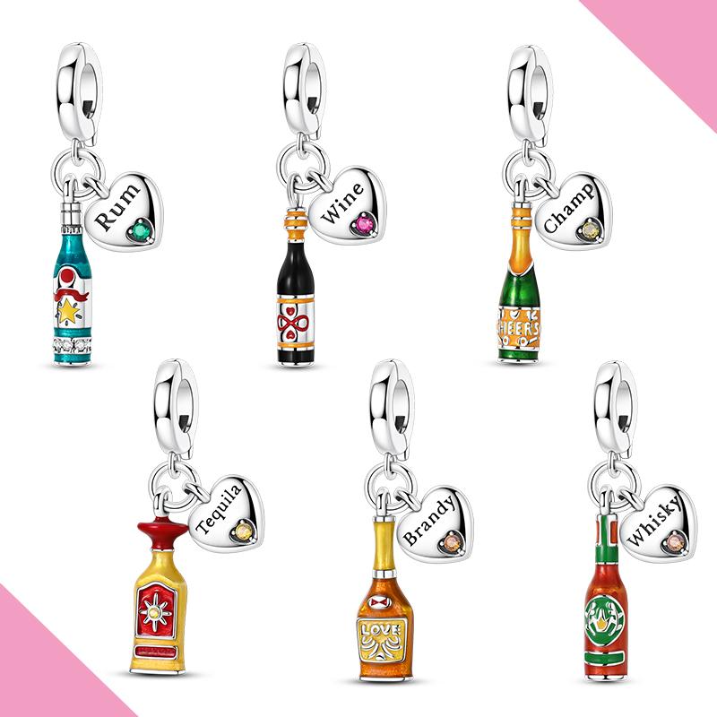 Copper Charms Wine Rum Champ Brandy Dangle Charm Fit Bracelet Diy Original Jewelry For Woman