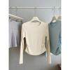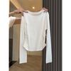 Card waist pleated white long-sleeved short top women's autumn small hot girl slim-fitting straight shoulder bottoming shirt T-shirt
