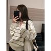 Contrasting striped sweater women's spring loose long-sleeved bottoming shirt large size zipper lo lapel top