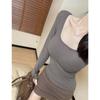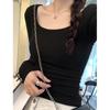 Women's Spring Slim-fit Sweet and Spicy Versatile Long-Sleeve T-Shirt with Chest Pad Square Neck Leaky Clavicle Bottom Shirt