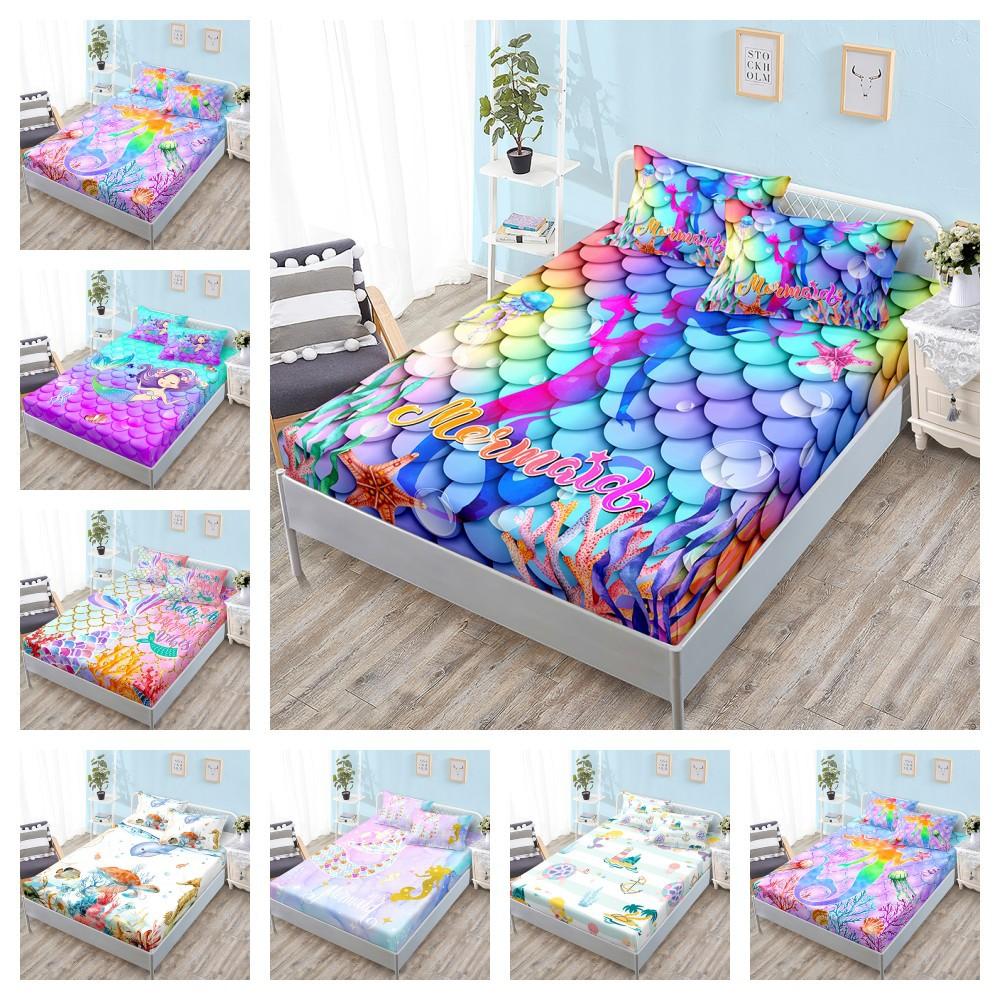 Gradual Change Color Mermaid Mattress Kit Three-Piece Pillowcase Mattress Cover