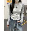 Winter new contrasting color shoulder sleeve printed T-shirt women's top Spice girl long-sleeved T-shirt bottoming shirt