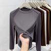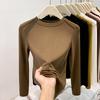Fleece polished small stand-up neck bottoming shirt women's spring fishbone front shoulder slim-fitting long-sleeved T-shirt with top inside
