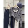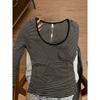 Contrasting color U-neck striped long-sleeved bottoming shirt women's spring new slim-fit Spice Girl style T-shirt with top inside
