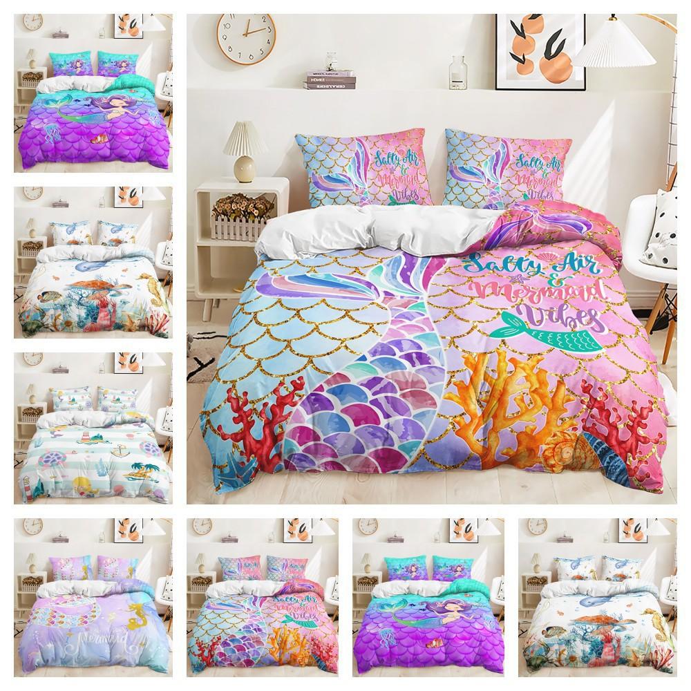 Bed Three-Piece Mermaid Kit Marine Animal Quilt Cover Two-Piece Bedroom