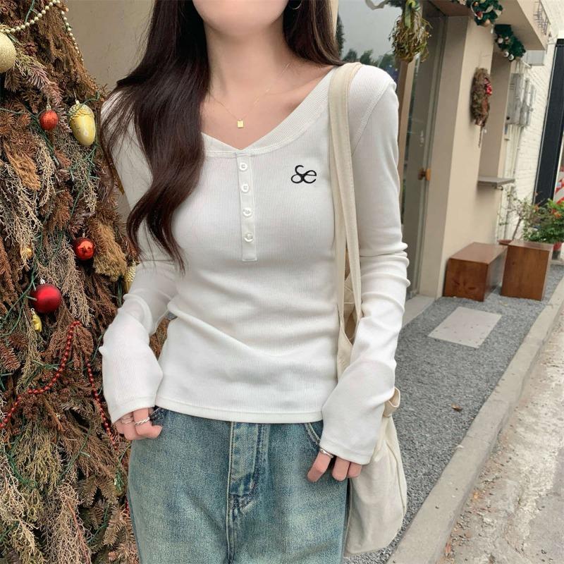 Early spring, be careful with the embroidery design collar, bottoming shirt, slim fit, Spice Girl style long-sleeved shirt, and versatile tops.