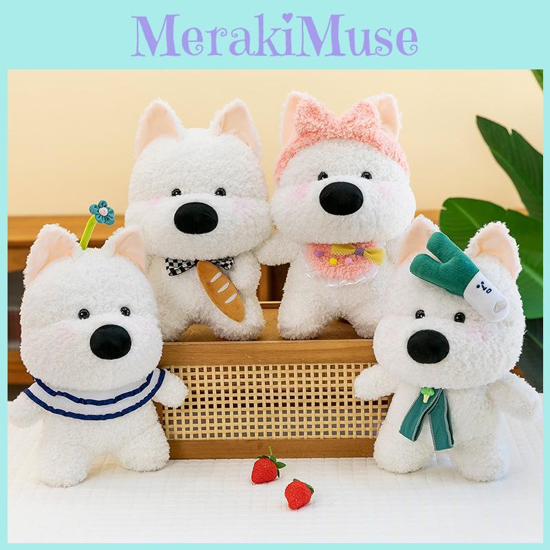Adorable Fluffy West Highland Terrier Plush Toy With Cute Bow And Soft Texture