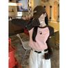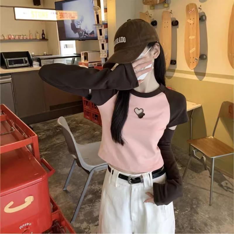 Unique sense of design, love, hollow top, spring contrasting color, broken-sleeved long-sleeved shirt, Spice Girl versatile bottoming shirt