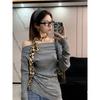 Contrasting color striped shoulder top women's spring slim-fitting off-the-shoulder Spice Girl style long-sleeved shirt with bottoming shirt